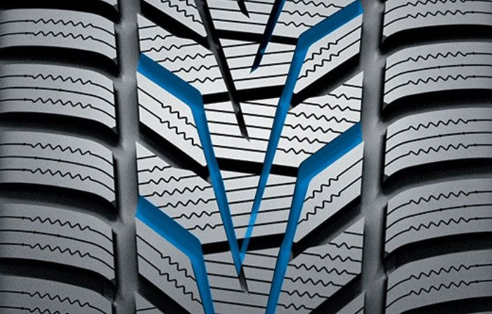 Le profil directionnel en forme de V permet d'évacuer l'eau sur les côtés afin de prévneir efficacement des risques d'aquaplanning.
