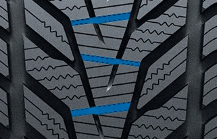 Améliorent la traction sur neige et la performance de freinage grâce aux inclinaisons optimisées des rainures centrales transversales.
